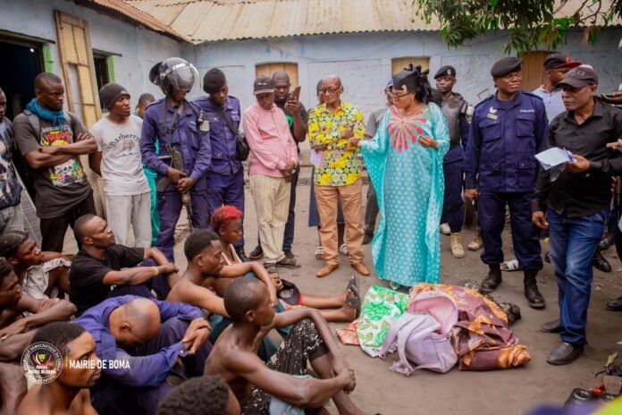 Ce jeudi 25 septembre 2025, le commissariat urbain de la police nationale congolaise de ville de Boma a procédé en présence de Me Claudelle Phemba Kiadi, Maire intérimaire de la ville de Boma, à la présentation des présumés criminels et de deux policiers arrêté la nuit du mercredi 24 au jeudi 25 au cours d’une opération de patrouille mixte.