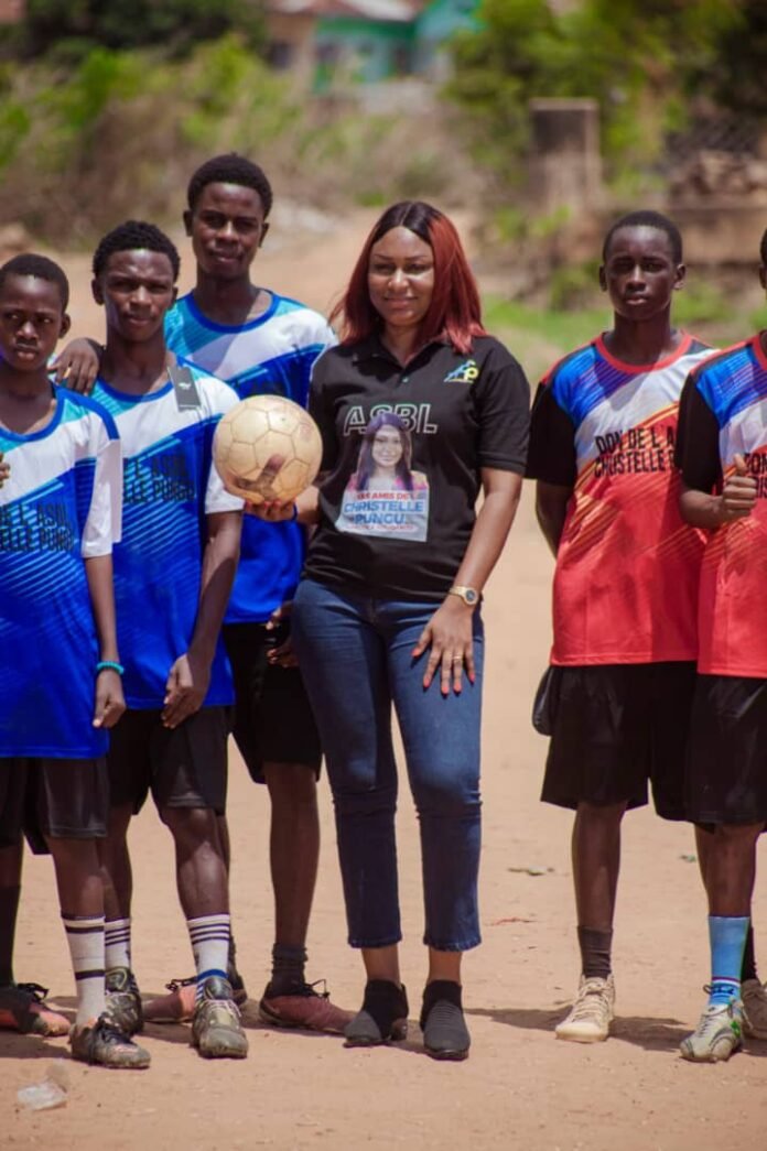 PAprès avoir réhabiliter le centre médical la Fraternité et accompagner les femmes vendeuses du marché KM3 au quartier Minkondo, Christelle Pungu a ce dimanche 23 novembre réaffirmer son accompagnement à la jeunesse sportive du quartier colonie.